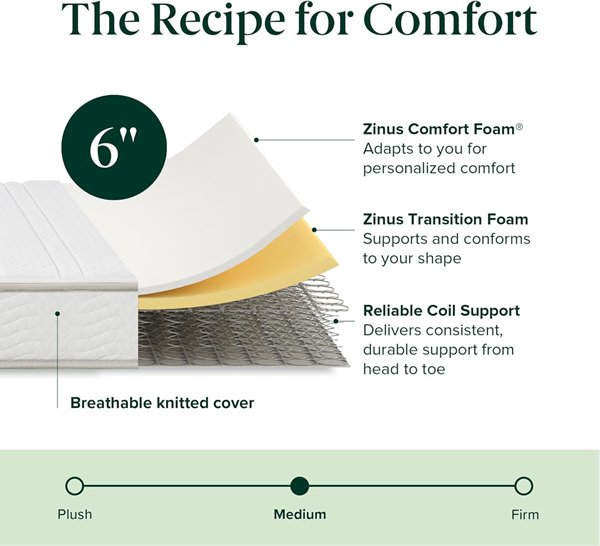 Zinus Foam & Spring CertiPUR-US Certified Pressure Relief Twin Hybrid Mattress - 6" - TWIN - WHITE/GREY (MODEL: ZU-MSSA2BZI-06T)