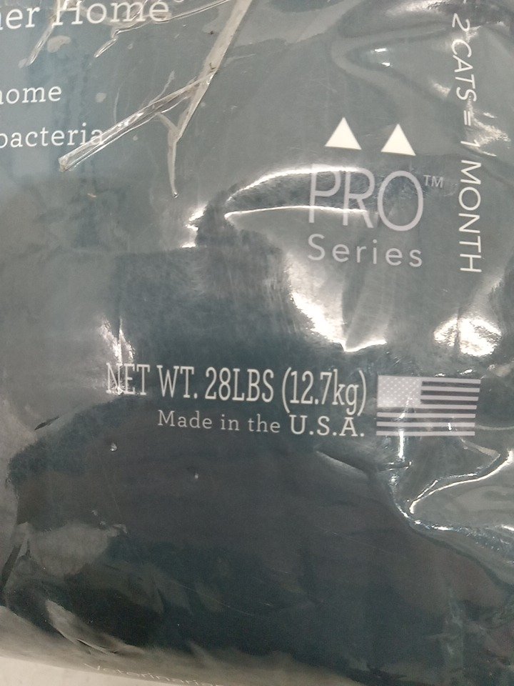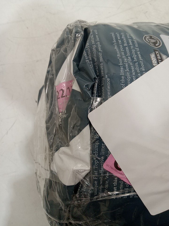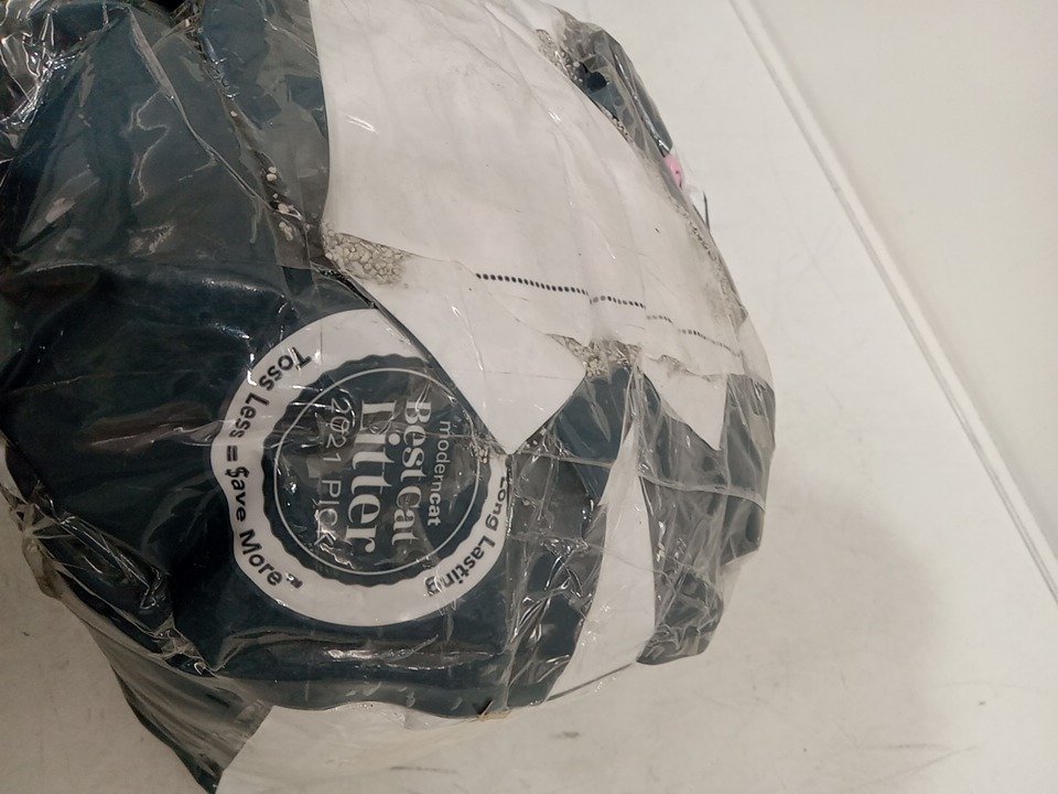upon inspection we have found that this item has been cut open and taped over, this seems to be due to shipping and handling or previous use. we are unsure if their is still 28lbs of cat litter in the bag as it was cut open and some could have split out. see photos below.