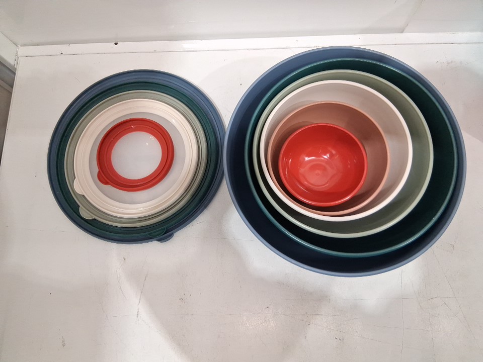 Please note that there are some scratches on the some of the bowls consistent with previous use. One of the lids is missing