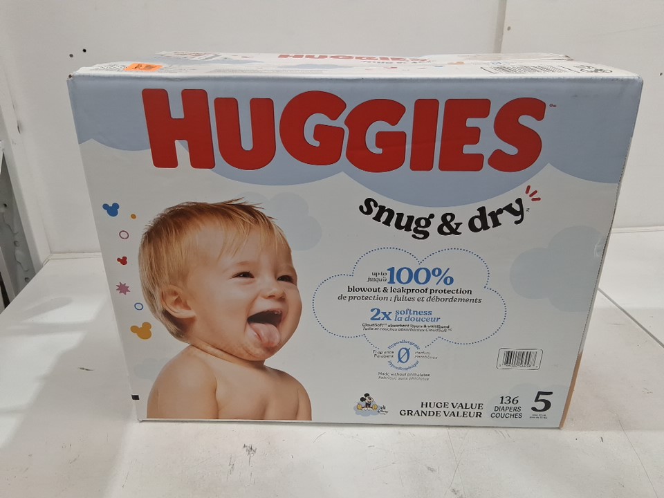 136pk huggies disney baby snug and dry disposable diapers - size 5 (27lb+)