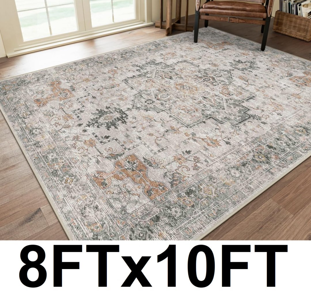 GENIMO Area Rugs for Living Room Non-Slip Machine Washable Rug - TAUPE DISTRESSED - 8FTX10FT (STYLE: r02-8x10-oc)