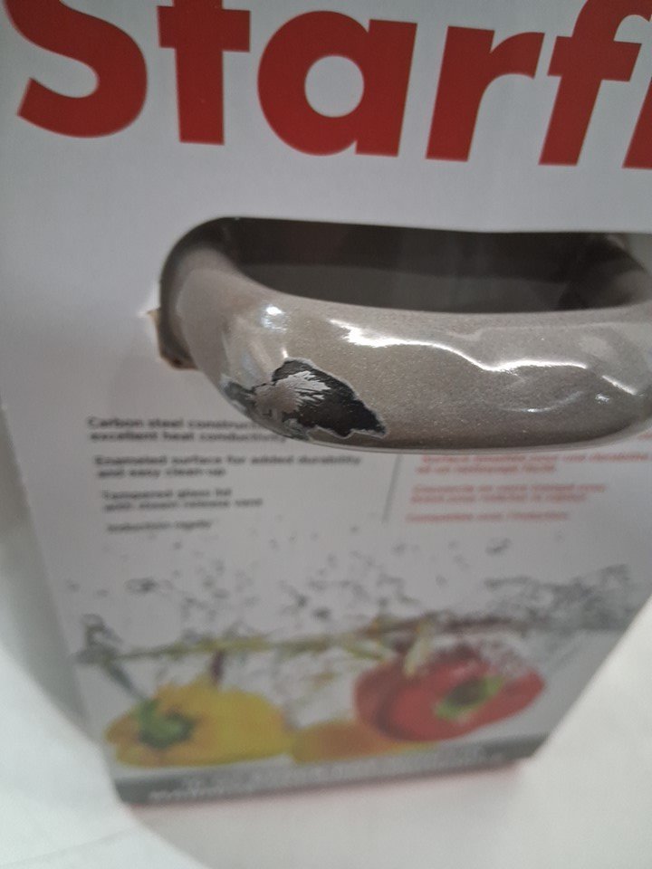 The paint on one of the handles is scuffed due to shipping, otherwise appears unused as the packaging on the pot itself is still sealed - see photos.