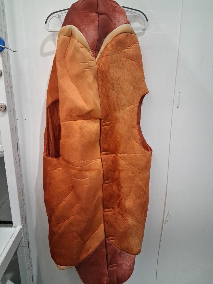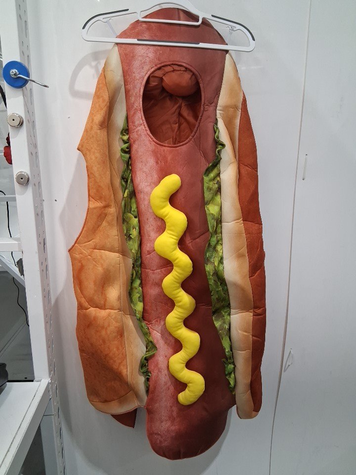 ADULT ONE-PIECE HOTDOG COSTUME WITH RELISH AND MUSTARD - osfm - brown/red