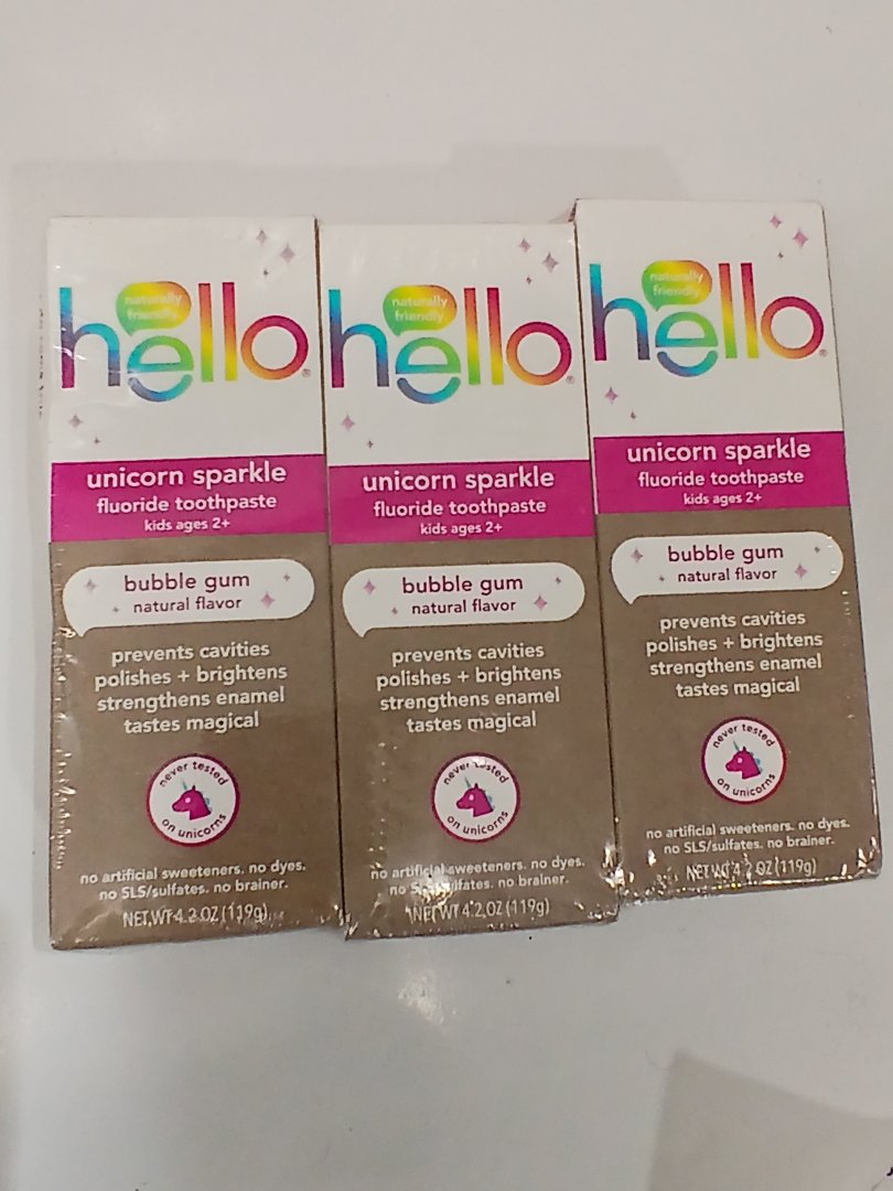 3 KIDS HELLO NATURAL FLUORIDE FREE TOOTHPASTE - UNICORN SPARKLE - 119G EACH