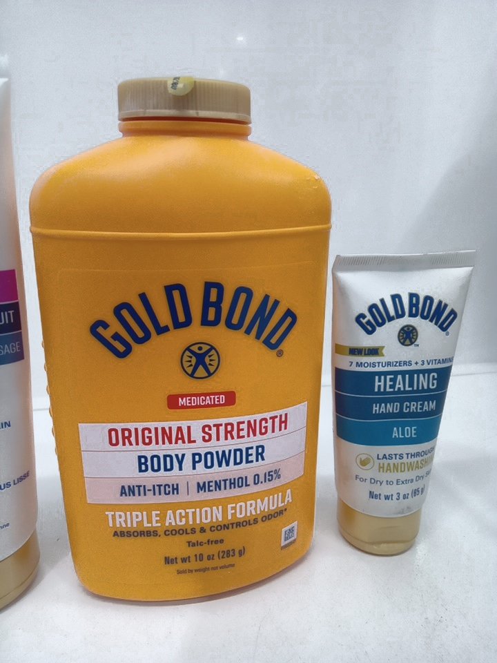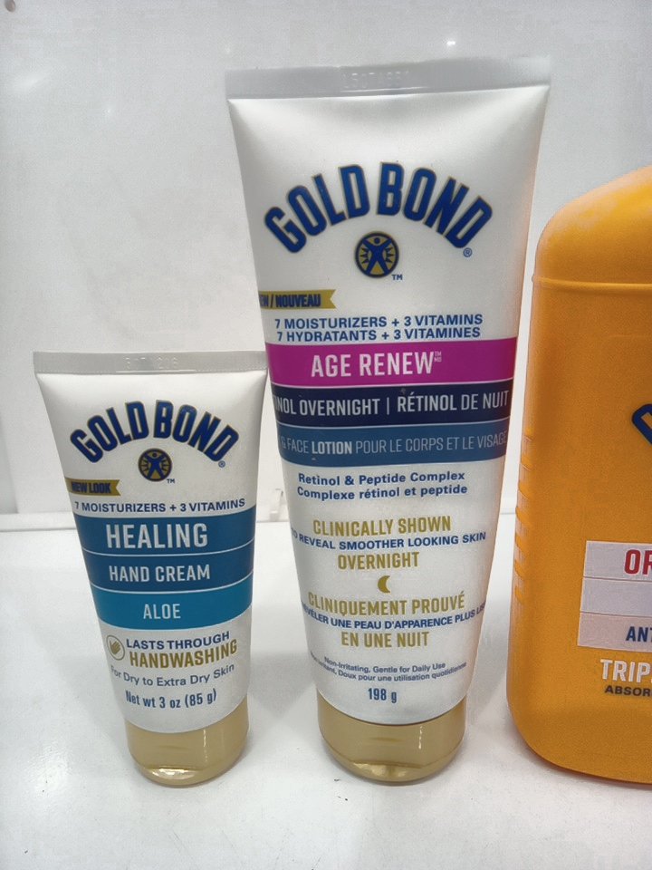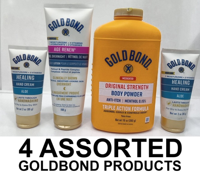 4 assorted goldbond products - hand lotion/age renew/ body powder