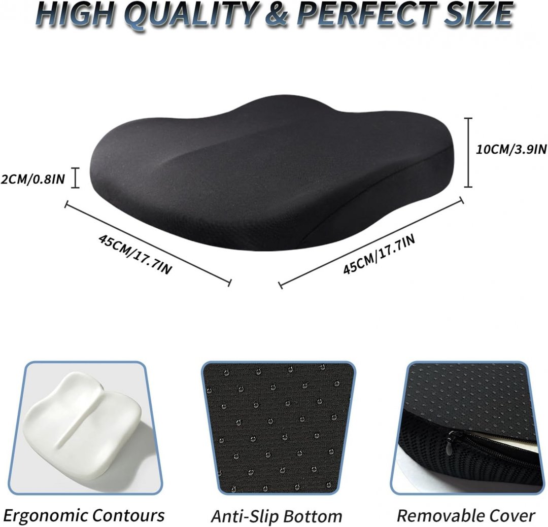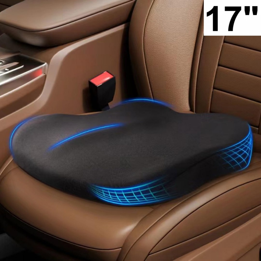 memory foam car booster seat cushion with removeable cover - 17" - black