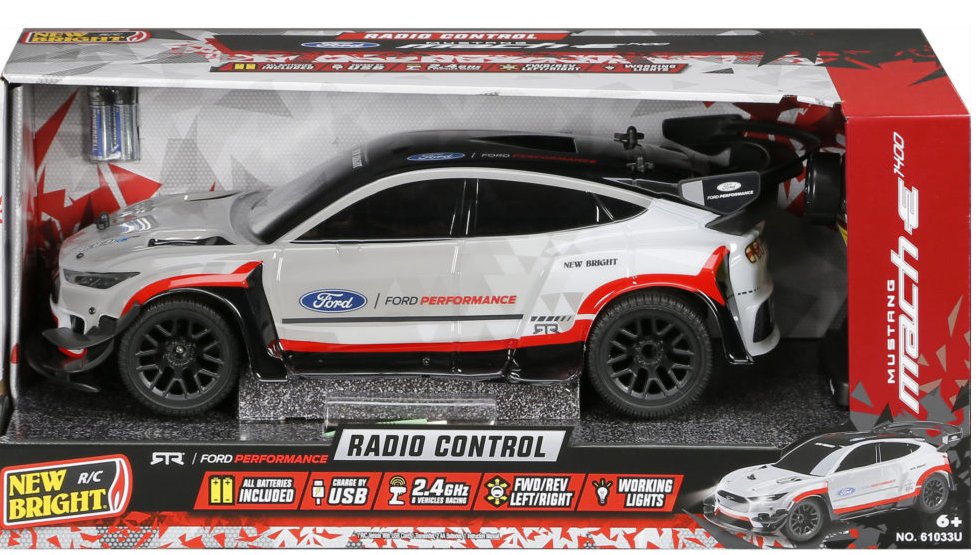 new bright Mustang Mach E 1400 remote control car - grey/white/red