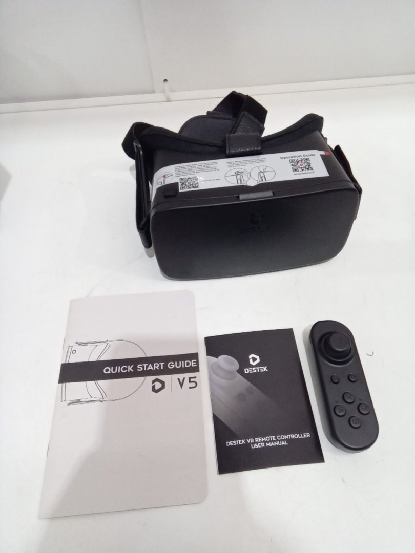 DESTEK V5 VR Headset with Anti-Blue HD Lenses AND REMOTE 110° FOV - Fits Phones Up to 6.4" x 3.3" - BLACK
