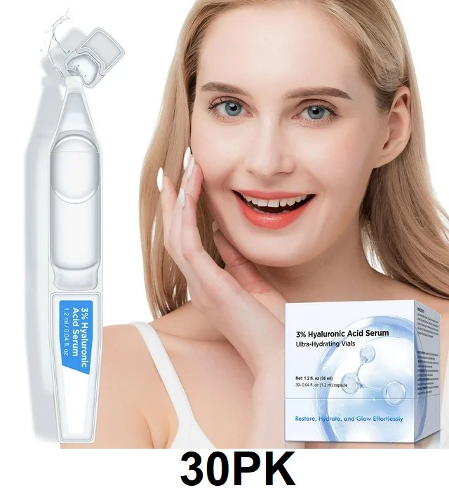 30PK 3% Ultra Hydrating Hyaluronic Acid Serum Tubes - FOR FACE - 1.2ML EACH