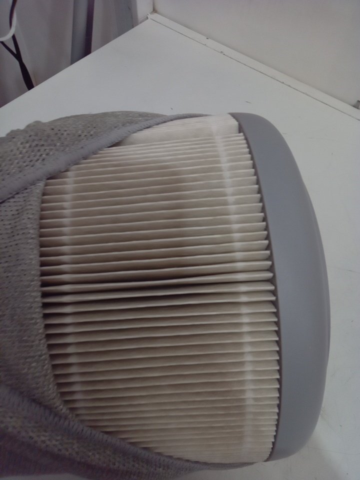 tested for power. appears to have some discoloration around the filter can be replaced and washed. please note that there is some scuffing on the front face of the machine (See photo)