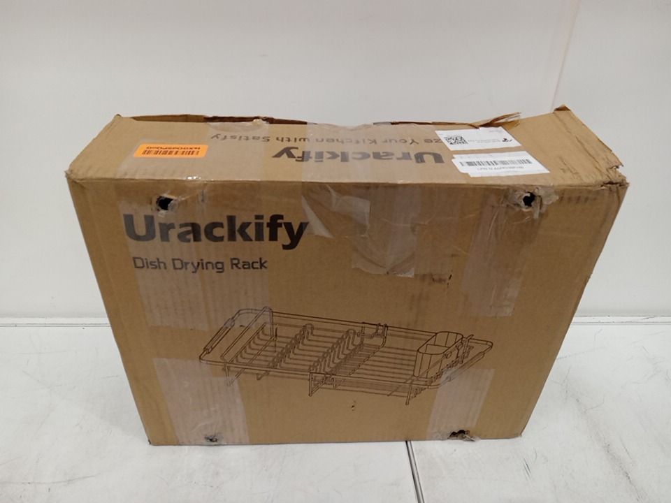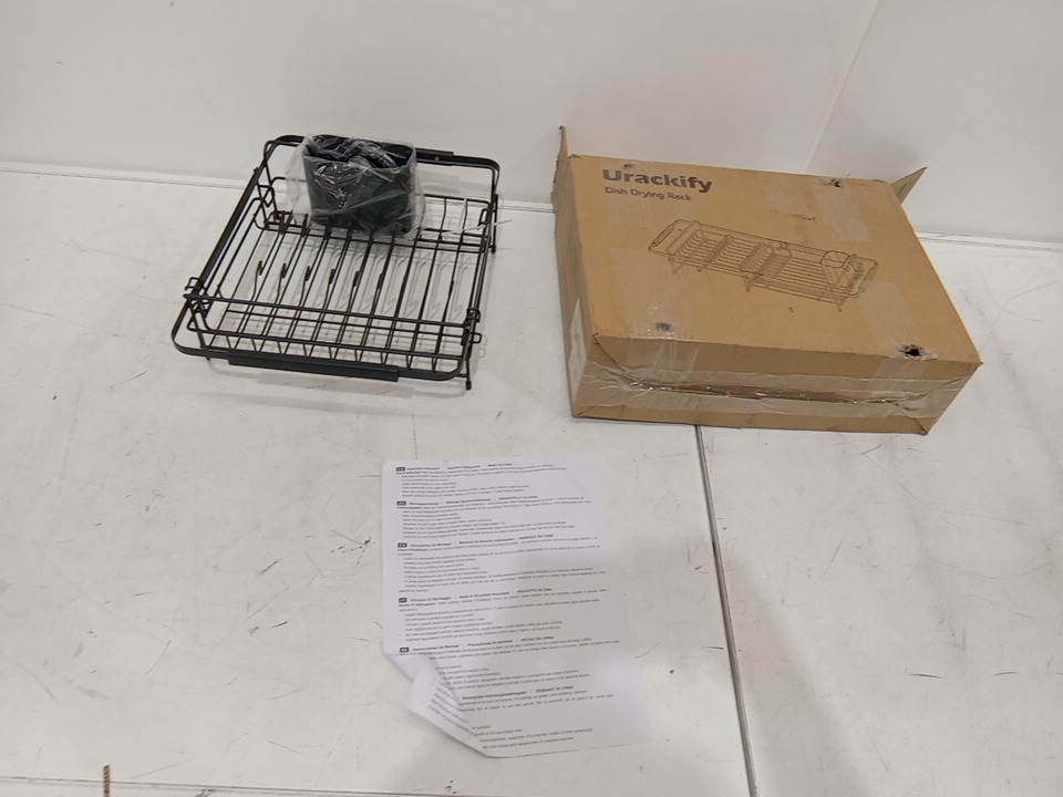 Urackify Expandable Dish Drying Rack with Drainboard - 16"-26" x 13" - Black/Stainless Steel