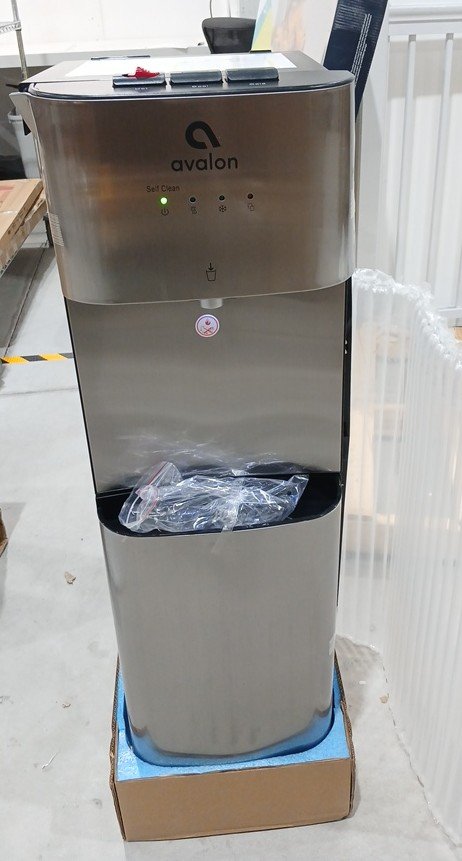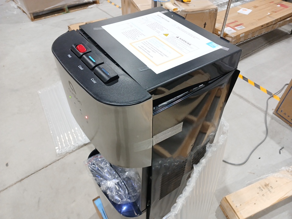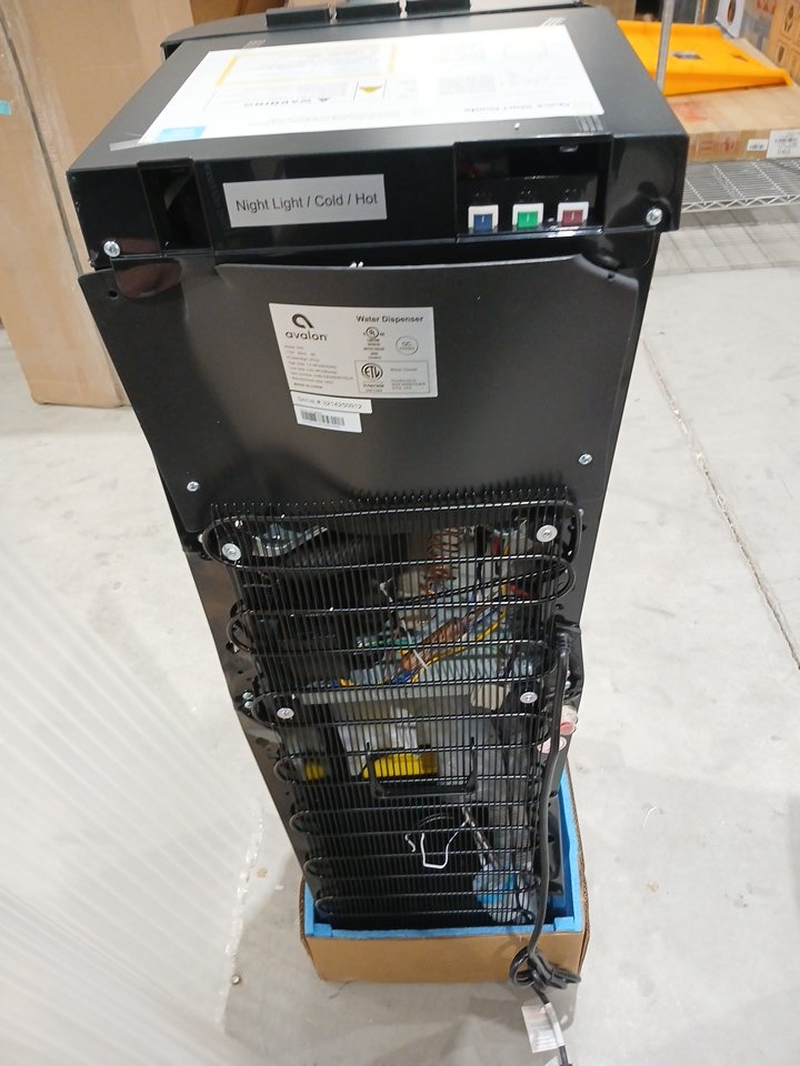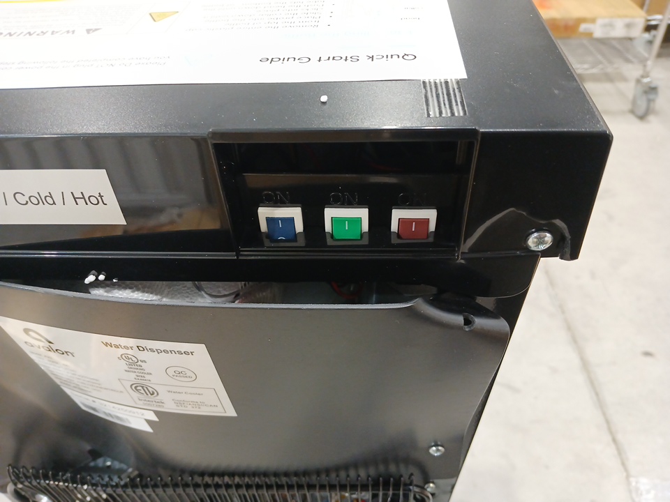 Water Jug not included. This item is severely dented. This item is so dented that you cannot click the switches in the back. This item has been tested for power