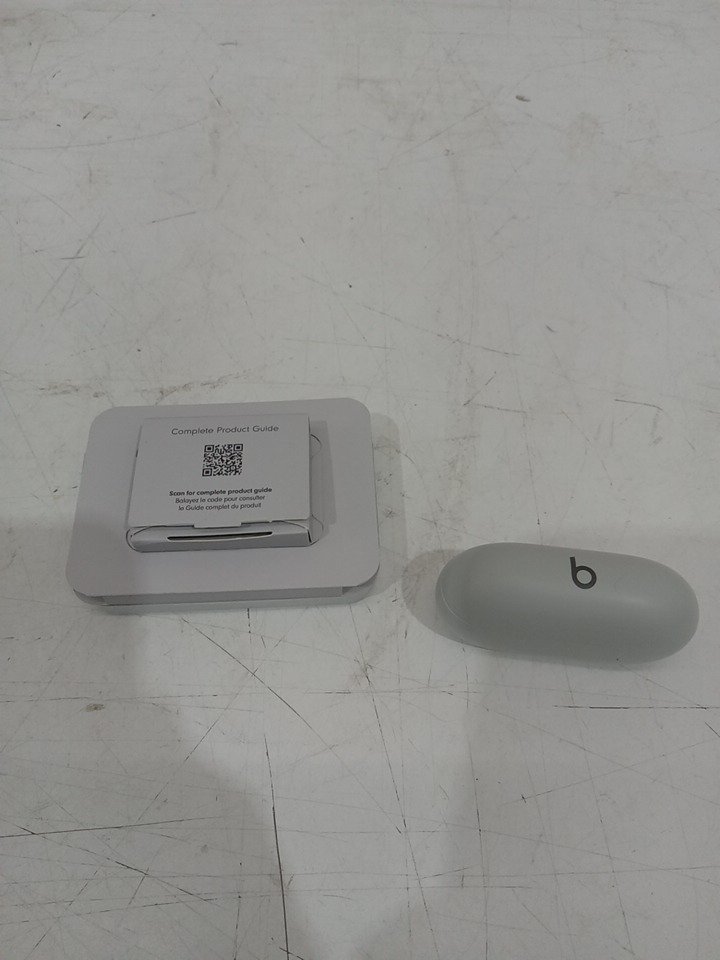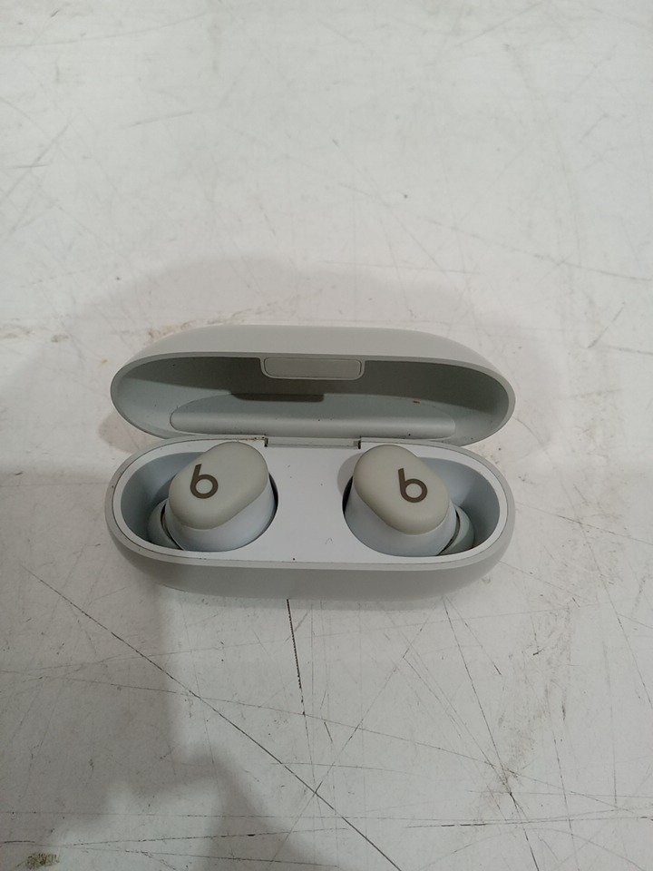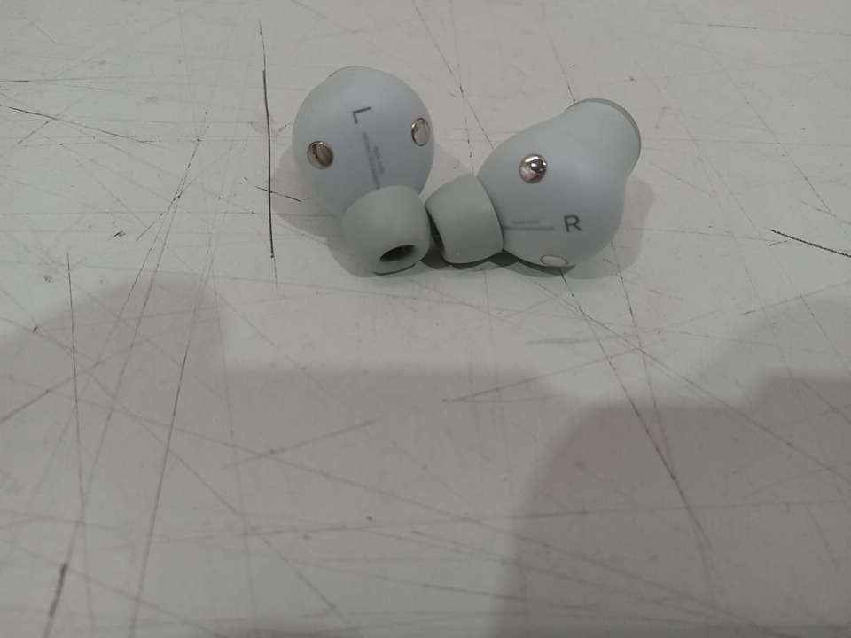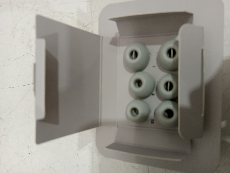 There are scratch marks on the charging case and there are minor dirt residue on the ear tips due to previous use. Tested for power and functionality. (Please see photos)