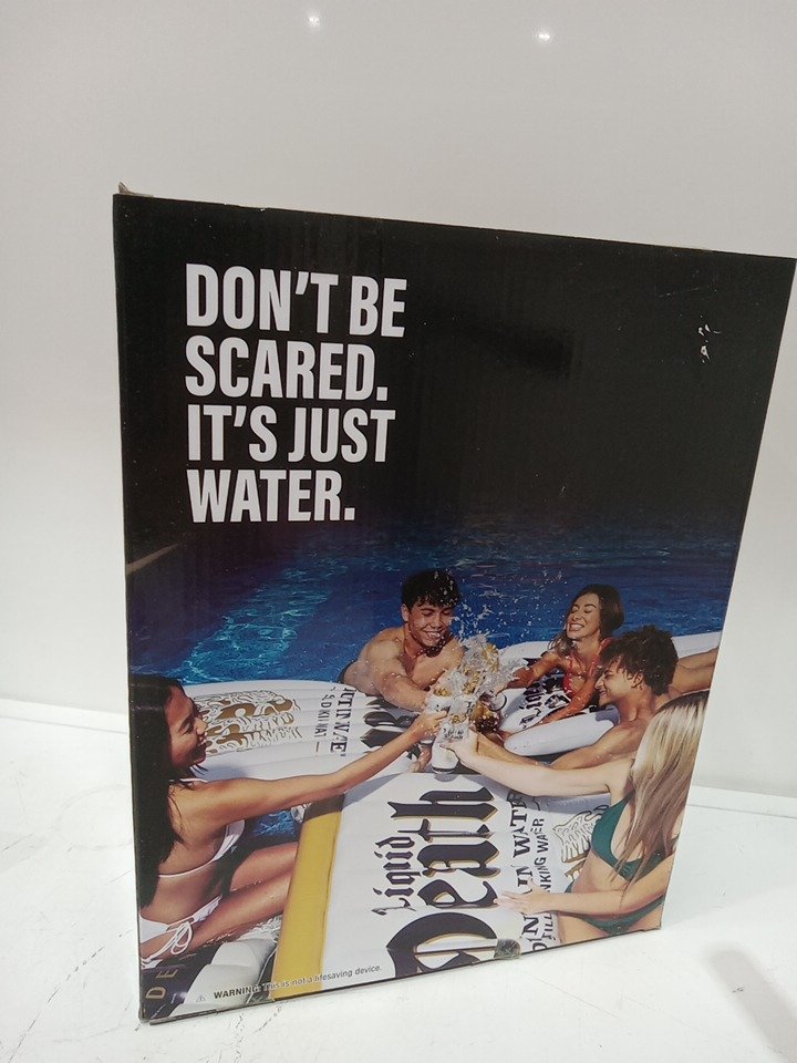 Liquid Death Extra Large Inflatable Pool Float - 72"X36" - WHITE/NAVY