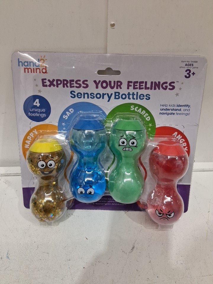 4PK HAND2MIND EXPRESS YOUR FEELINGs SENSORY BOTTLES - HAPPY/SAD/SCARED/ANGRY - blue/red/gold/green (model: 94488)
