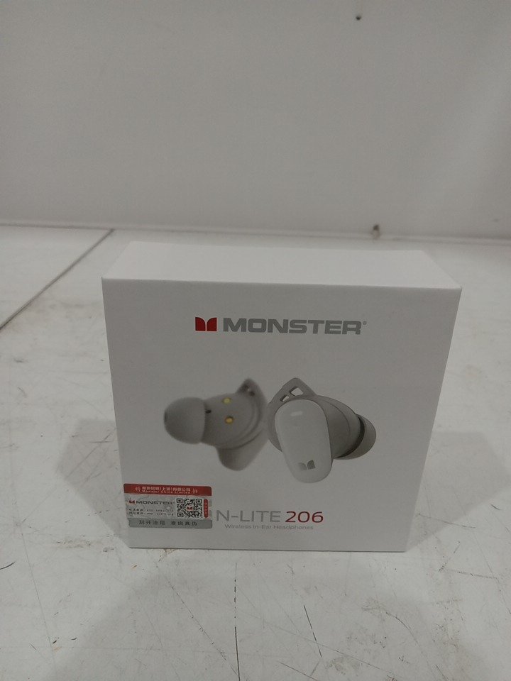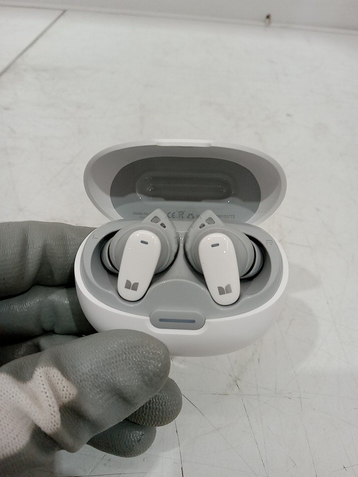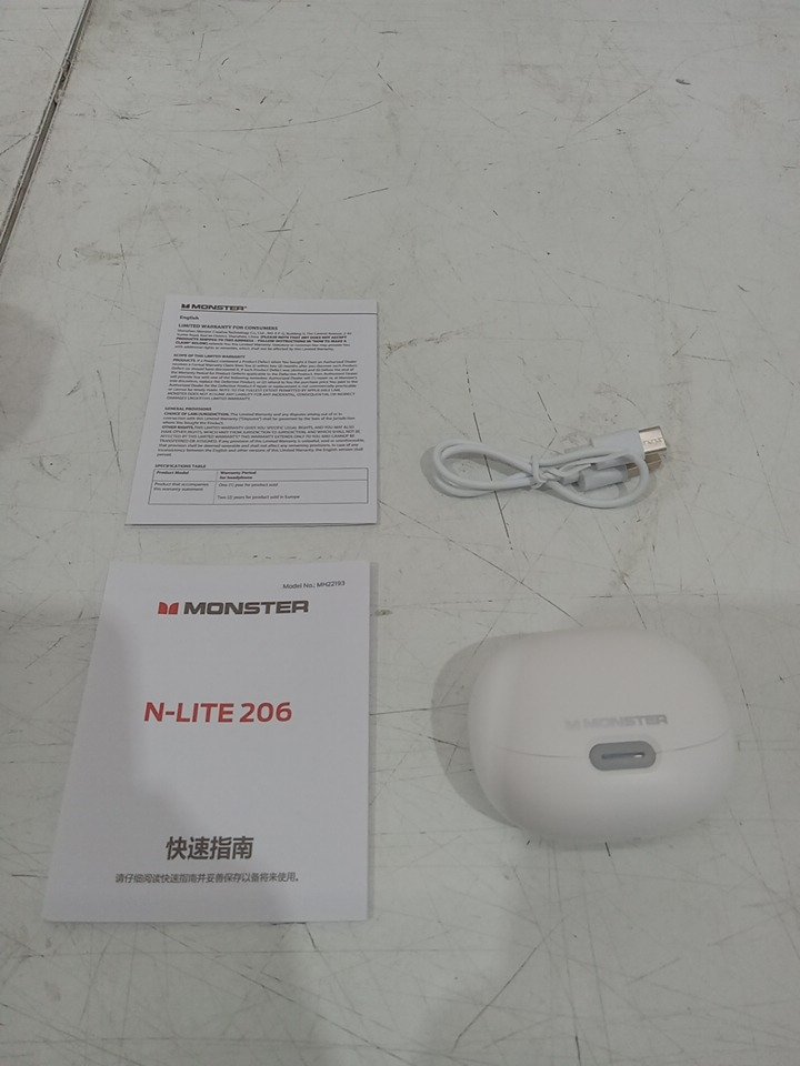 Monster N-Lite 206 Wireless BLUETOOTH Earbuds - HiFi Stereo in ear Headphones with 25H Playback, Touch Control, TYPE-C FAST CHARGING, IPX6 Waterproof - white (MODEL: MH22193)
