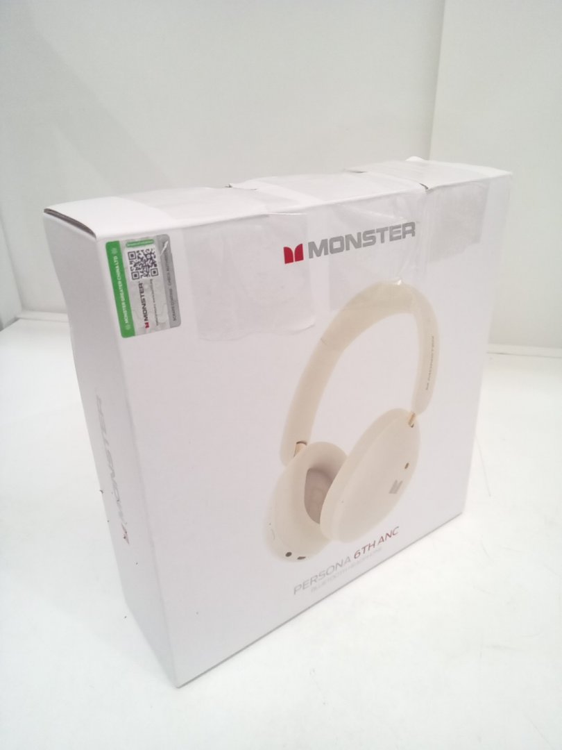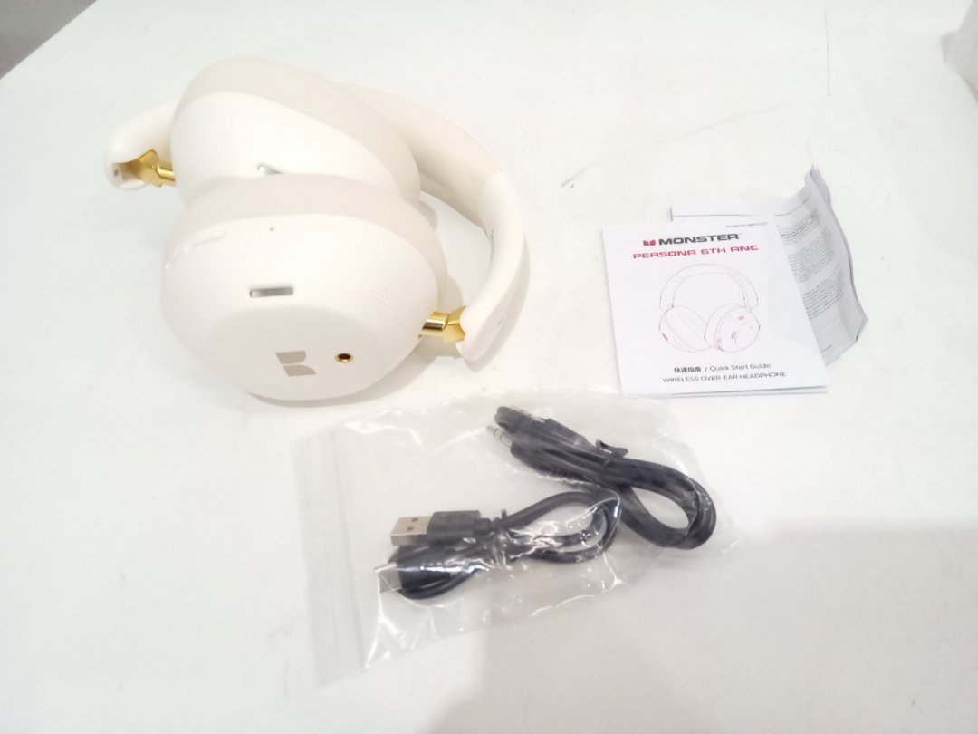 Monster Persona 6th Bluetooth Wireless Over Ear Headphones with Active Noise Cancelling and HiFi Stereo Audio - White/Gold (Model: MH22267)
