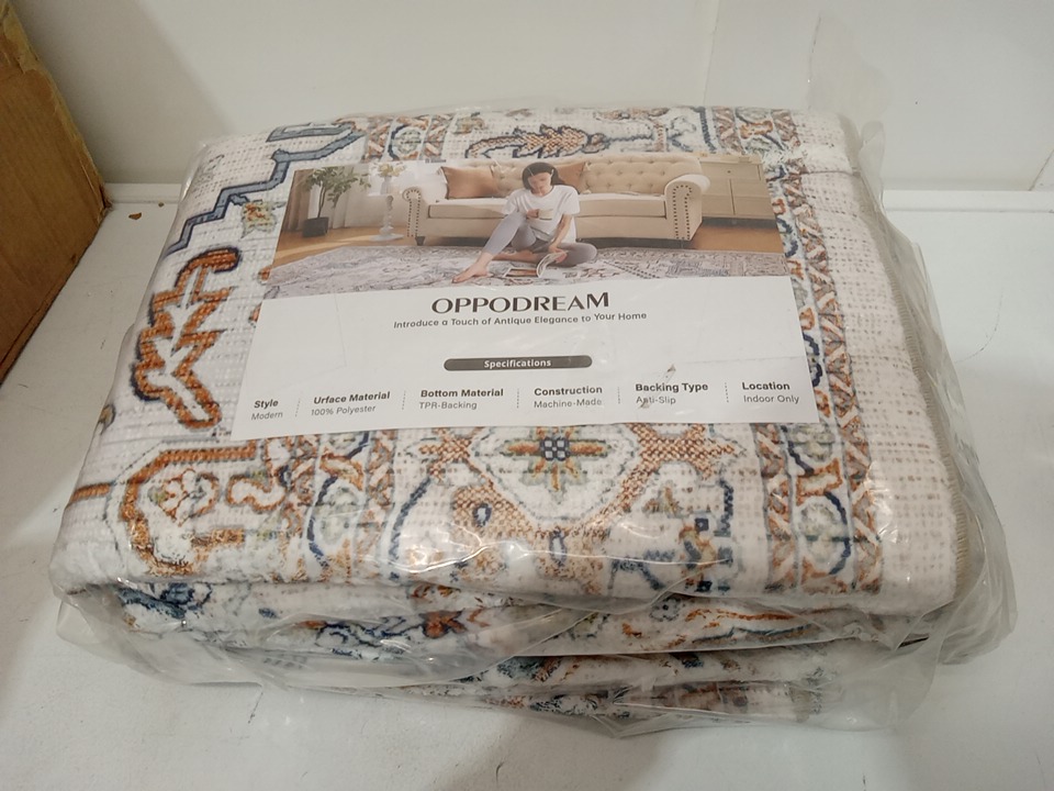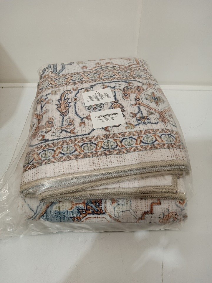 OPPODREAM ultra soft machine washable living room area rug carpet - 5ft x 7ft - Cream/grey/Blue
