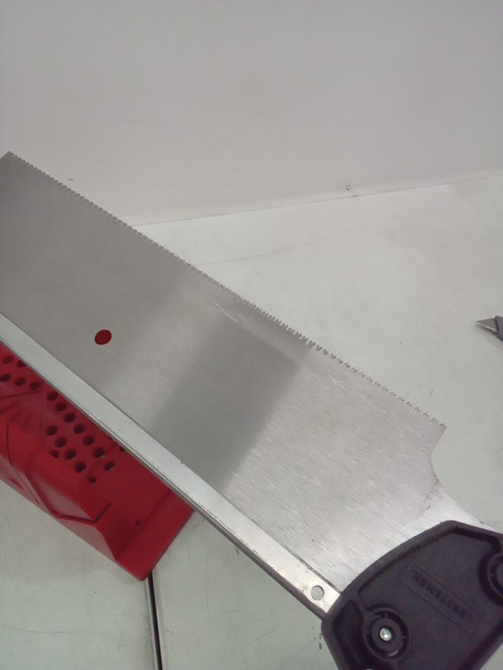 there is staining on the saw blade and minor dust throughout. see photos.