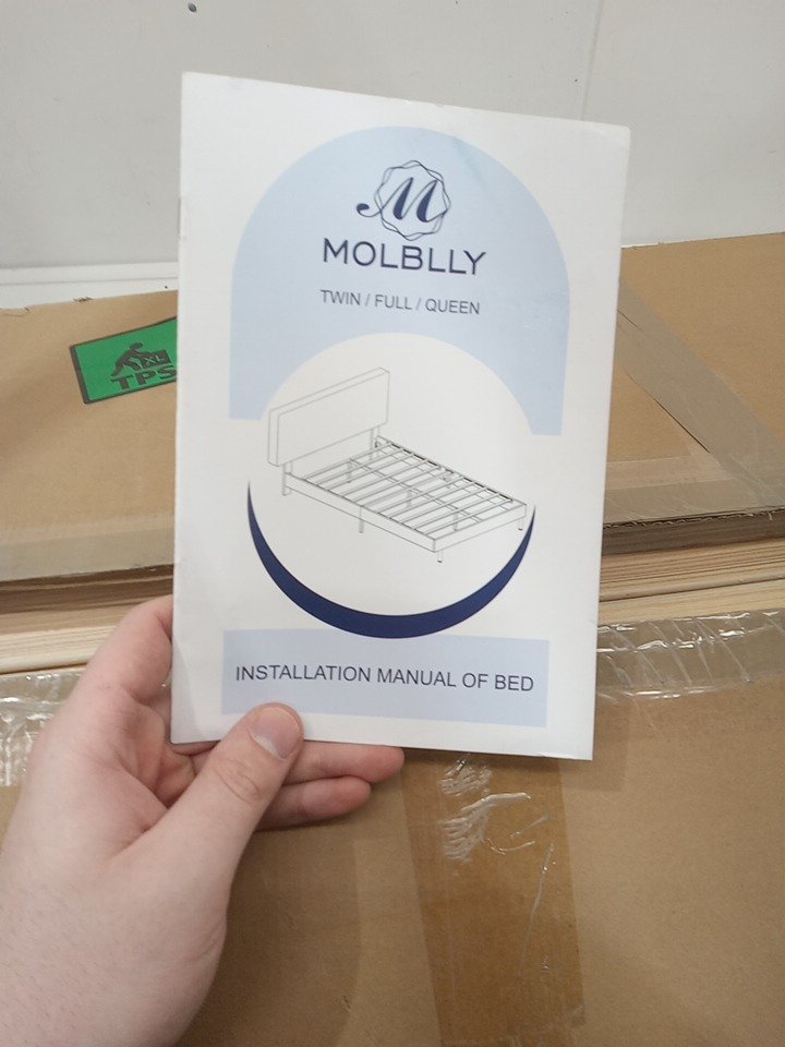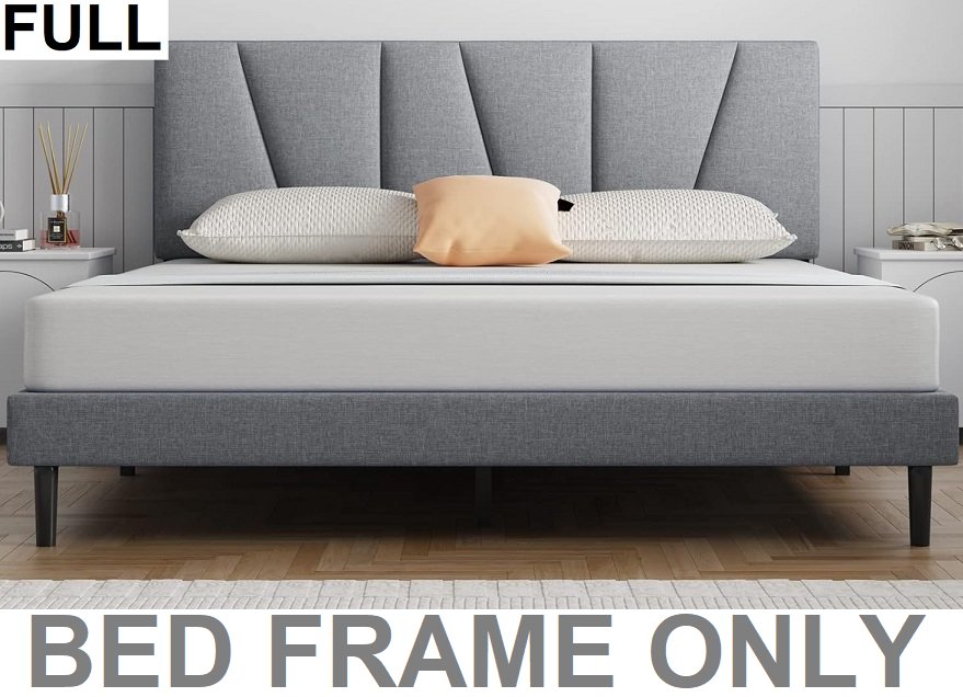 Molblly Bed Frame Upholstered Platform with Headboard and Strong Wooden Slats, Strong Weight Capacity, Non-Slip, full - LIGHT GREY (MODEL:6905)