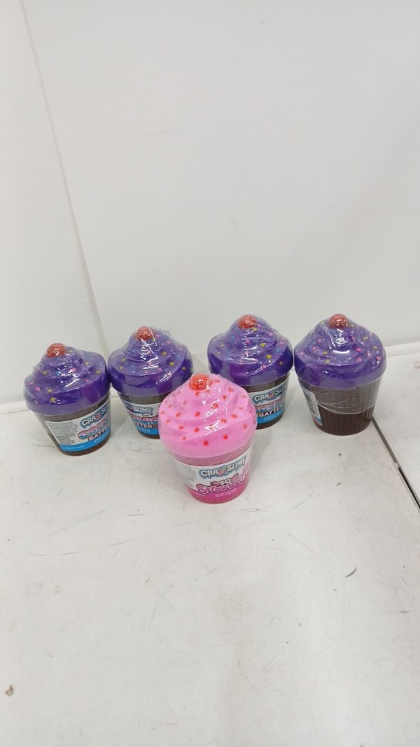 5 assorted Cra-Z-Slimy Scented Slime with Cupcake Shaped Container - strawberry and cosmic batter
