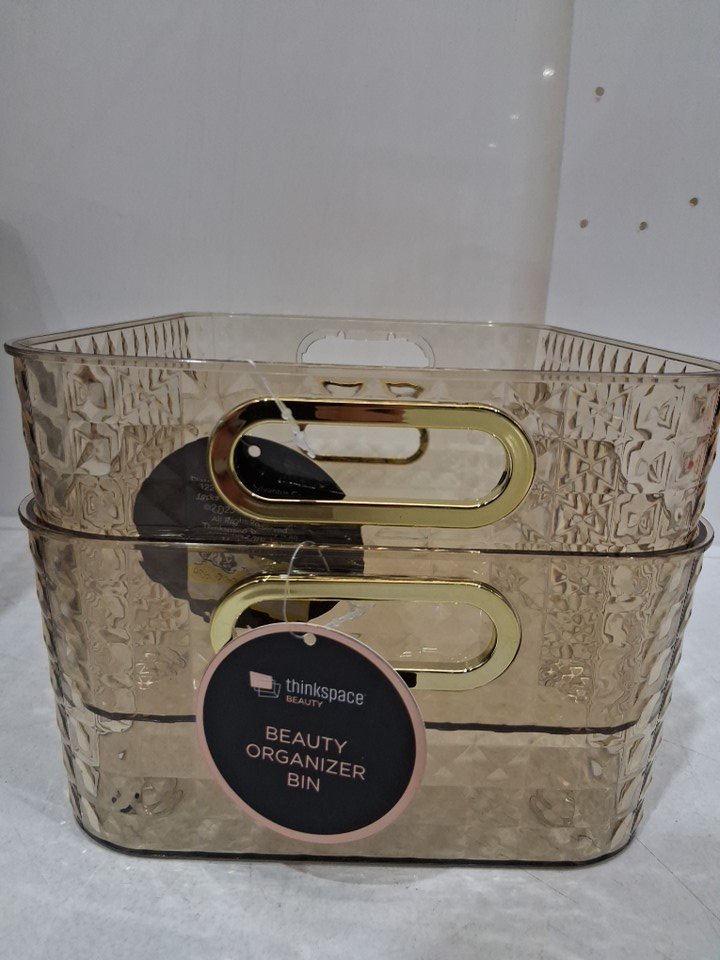 2PK Thinkspace Beauty Organizer Bin - 8" x 11" - Clear Amber