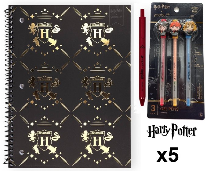 5 yoobi X HARRY POTTER STATIONERY BUNDLE pens & journals - black