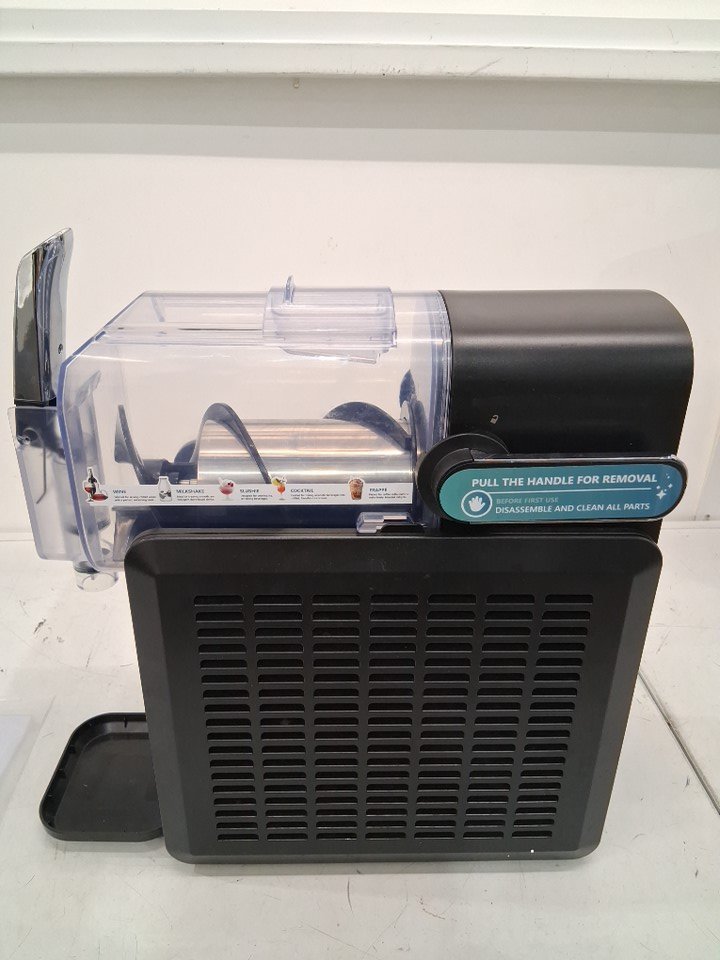 Mixing chamber and side vent show light syrup residue indicating prior short-term use. Missing tray guard. (See photos)