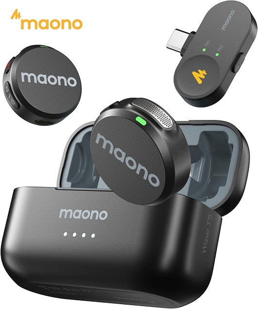 maono wireless lavalier microphone - 30hr battery | usb-c - black - (model: wave t5)