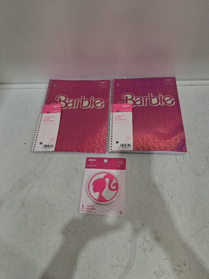 3 yoobi barbie notebooks and easer - pink/white