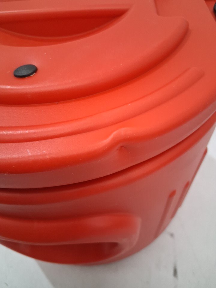 There is a small dent in the lid due to shipping - see photos. Otherwise appears to be in new condition.
