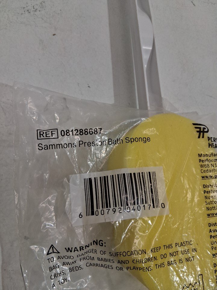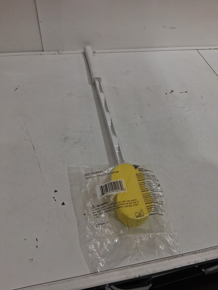 Sammons Preston Lightweight Long Handled Washer and Scrubber Contoured Bath Sponge Cleaning Aid - 26" - White/Yellow - (Model: 61292)
