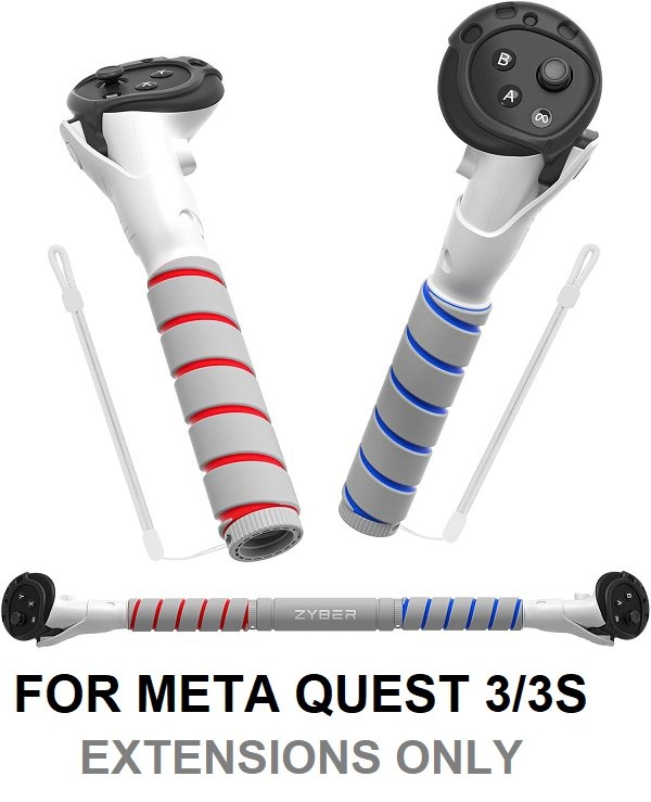 Zyber controller extensions for long arm, golf, beat saber - For Meta Quest 3/3s - Red/blue/grey