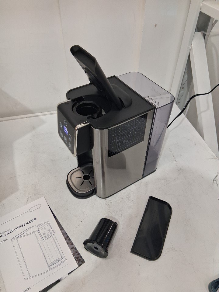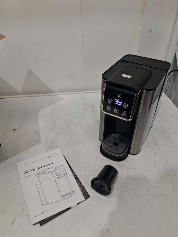 3 in 1 kidisle single serve iced hot and coffee maker - 50oz reservoir - 5 cup sizes - 1150w - 120v - black (model: kc101b)
