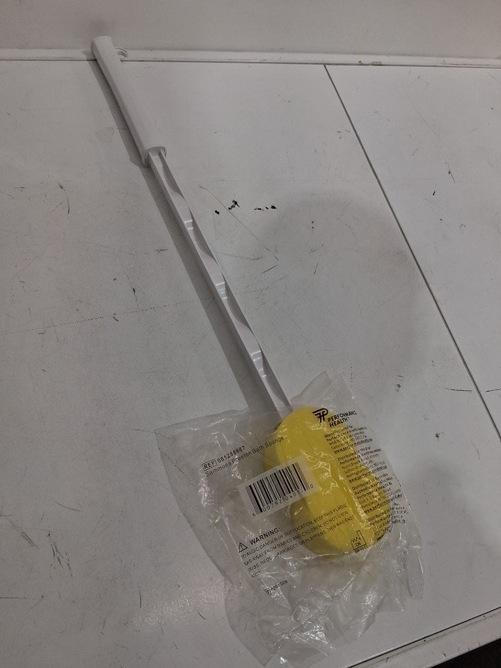 Sammons Preston Lightweight Long Handled Washer and Scrubber Contoured Bath Sponge Cleaning Aid - 26" - White/Yellow - (Model: 61292)