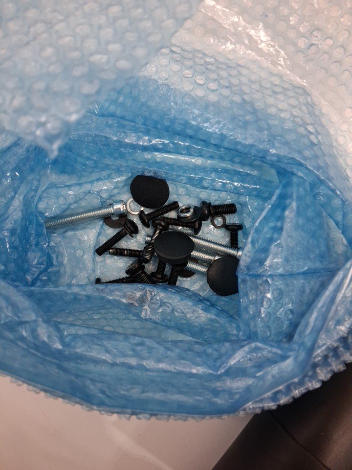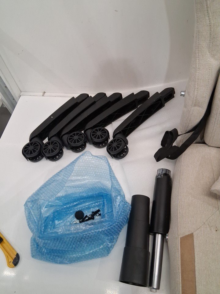 product is missing the footrest as well as has a small marking on the seat (see photos)