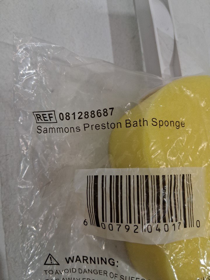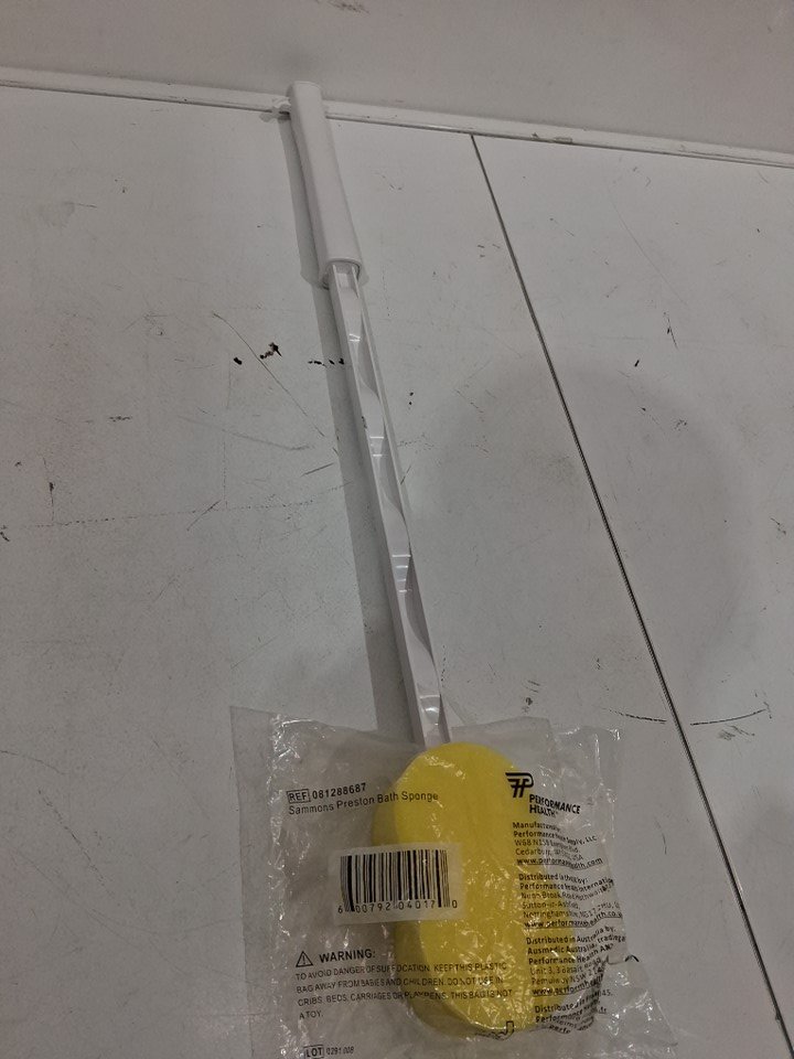 Sammons Preston Lightweight Long Handled Washer and Scrubber Contoured Bath Sponge Cleaning Aid - 26" - White/Yellow - (Model: 61292)