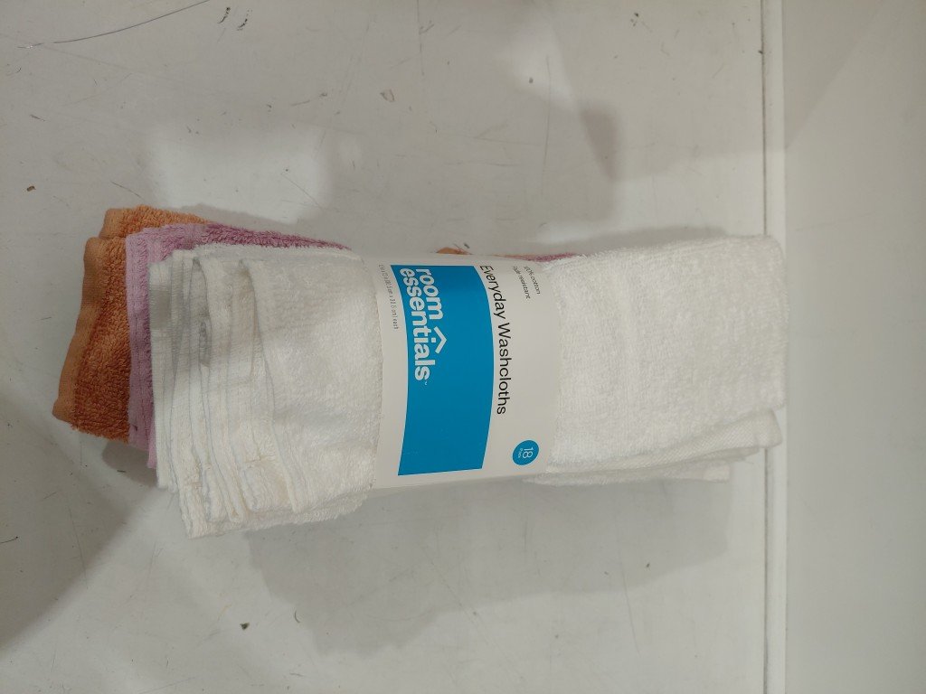 18PK ROOM ESSENTIALS 100% cotton everyday washcloths - 12" x 12" - white/pink/brown