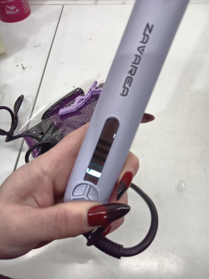 zavarea professional titanium rotating curling iron with 5 adjustable temp - auto off - dual voltage - 1.25" - gold/lavender- (model: uv217).