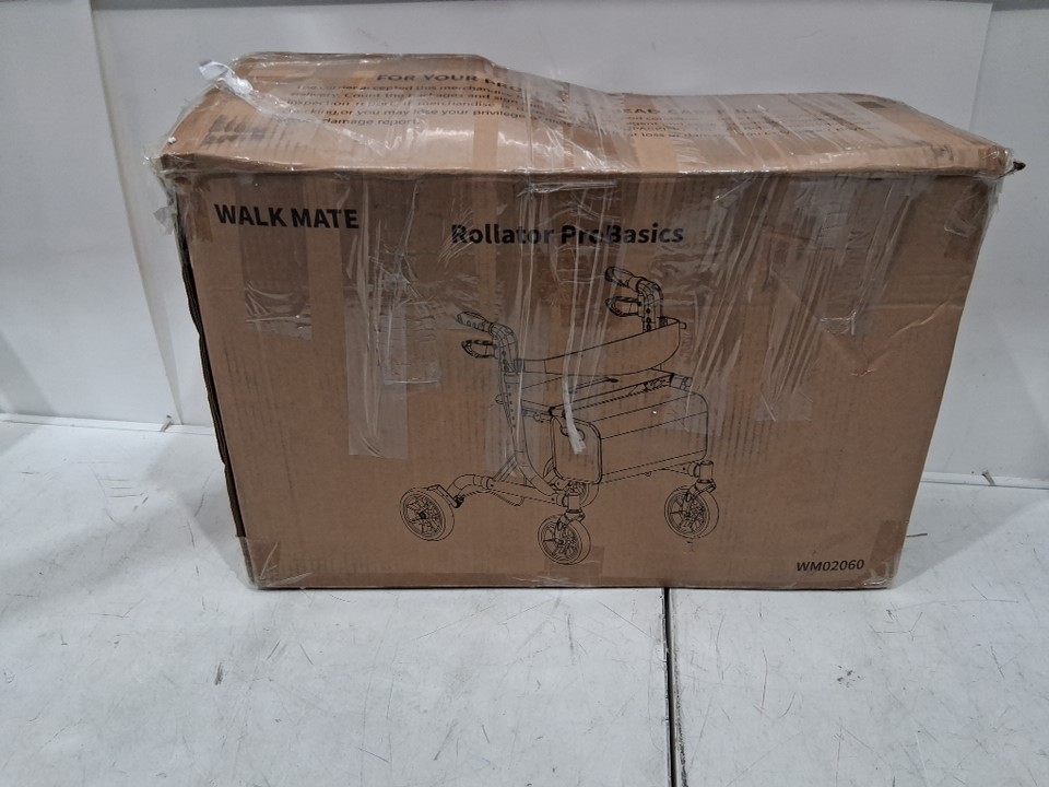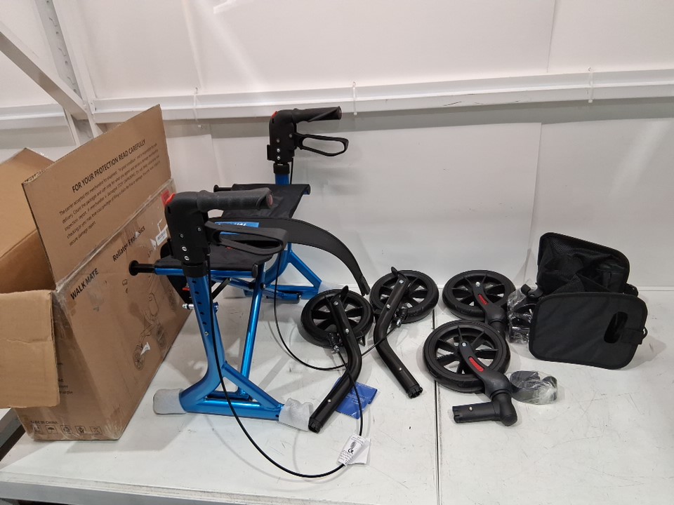 WALK MATE Folding Lightweight Rollator Walker with Seat and Padded Backrest - 300LBS Cap - Blue (MODEL: WM02060)