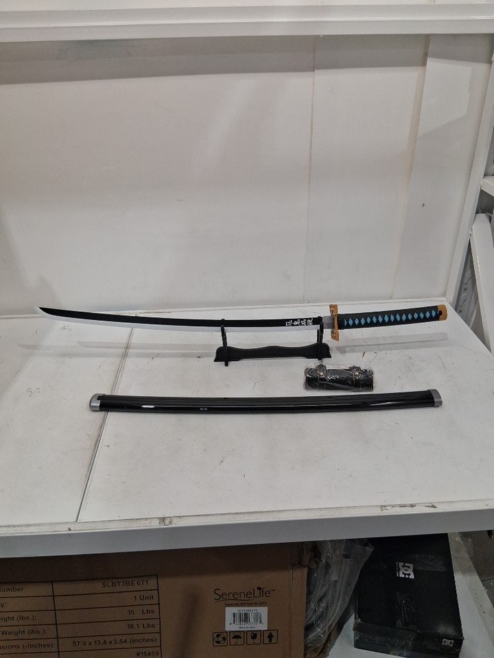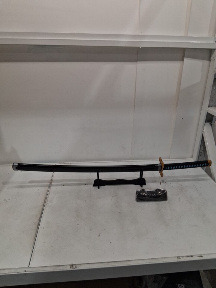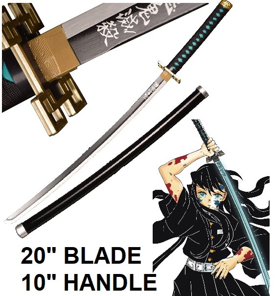 MUICHIRO TOKITO DEMON SLAYER ANIME COSPLAY WOODEN AND PLASTIC PROP SWORD - 30" TOTAL, 20" BLADE, 10" HANDLE - BLUE, BLACK, GOLD