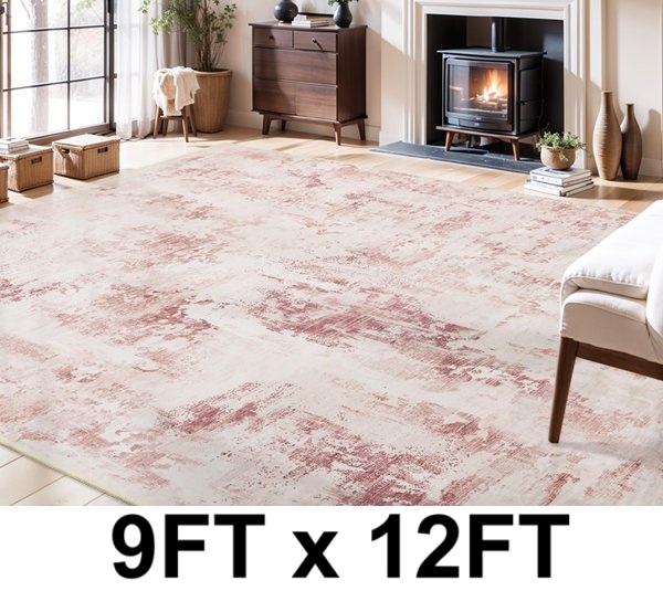 Machine Washable Non-Slip Abstract Area Rug - 8FT x 10FT - Pink - (Model: 9X12-CITYSYMPHONY-HY-CA-PINK)