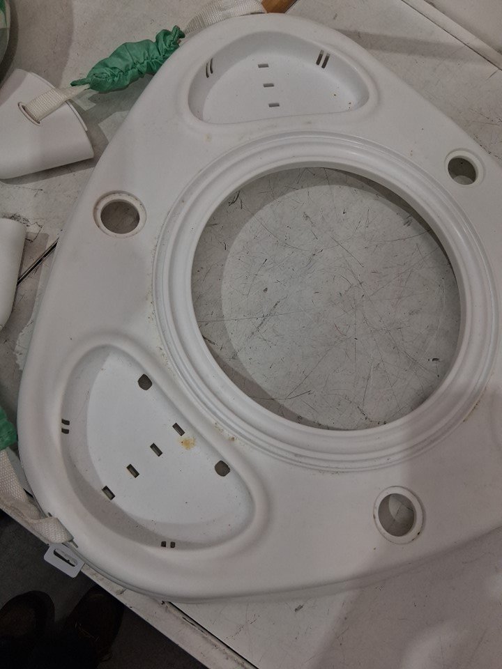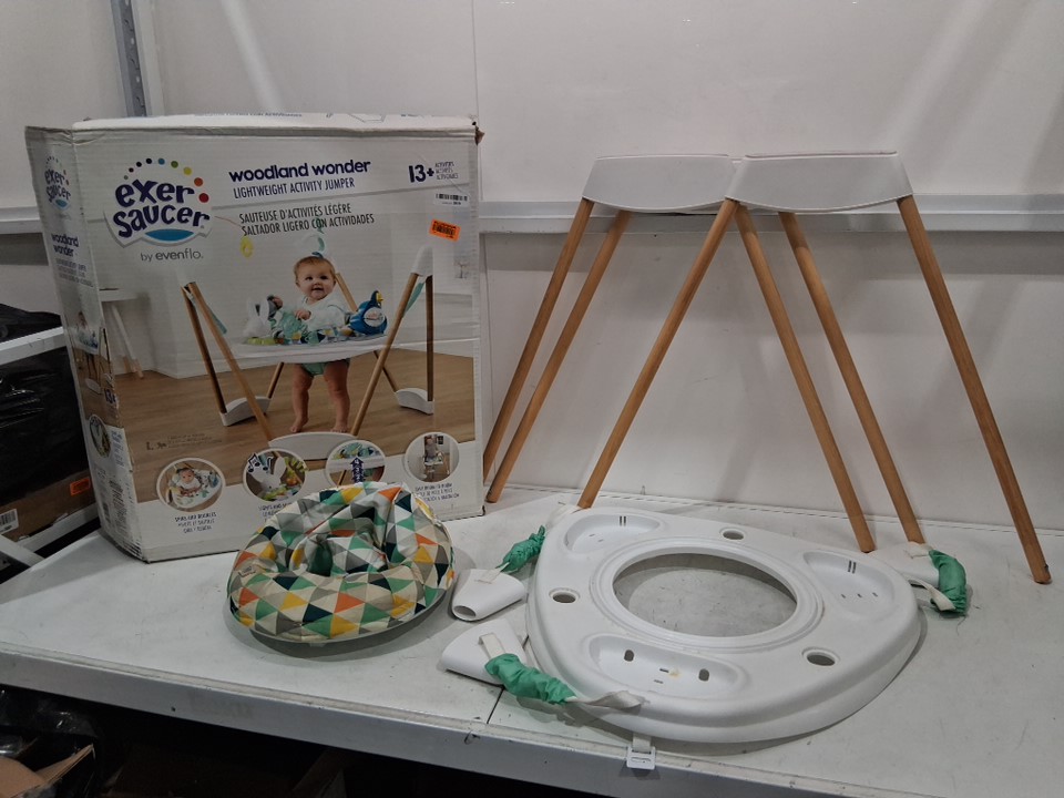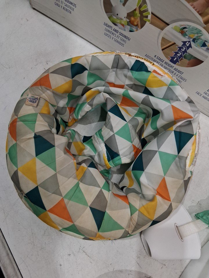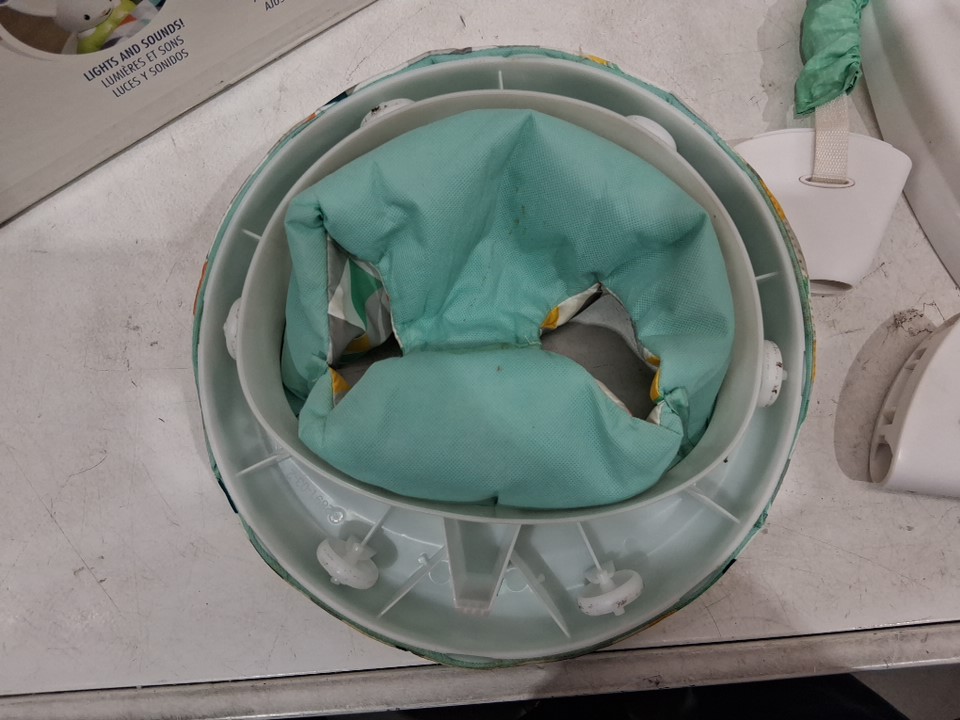Please note the item has dirt from previous use and will need to be cleaned. the chair piece has some staining. the additional activity items are missing. see photos.