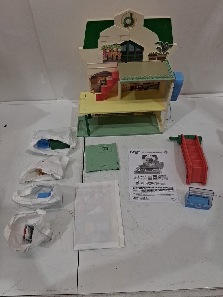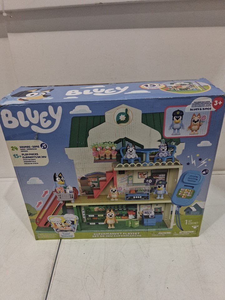 Bluey Supermarket Playset with Exclusive Bluey and Bingo Figures and 15+ play pieces (model: ‎18918)