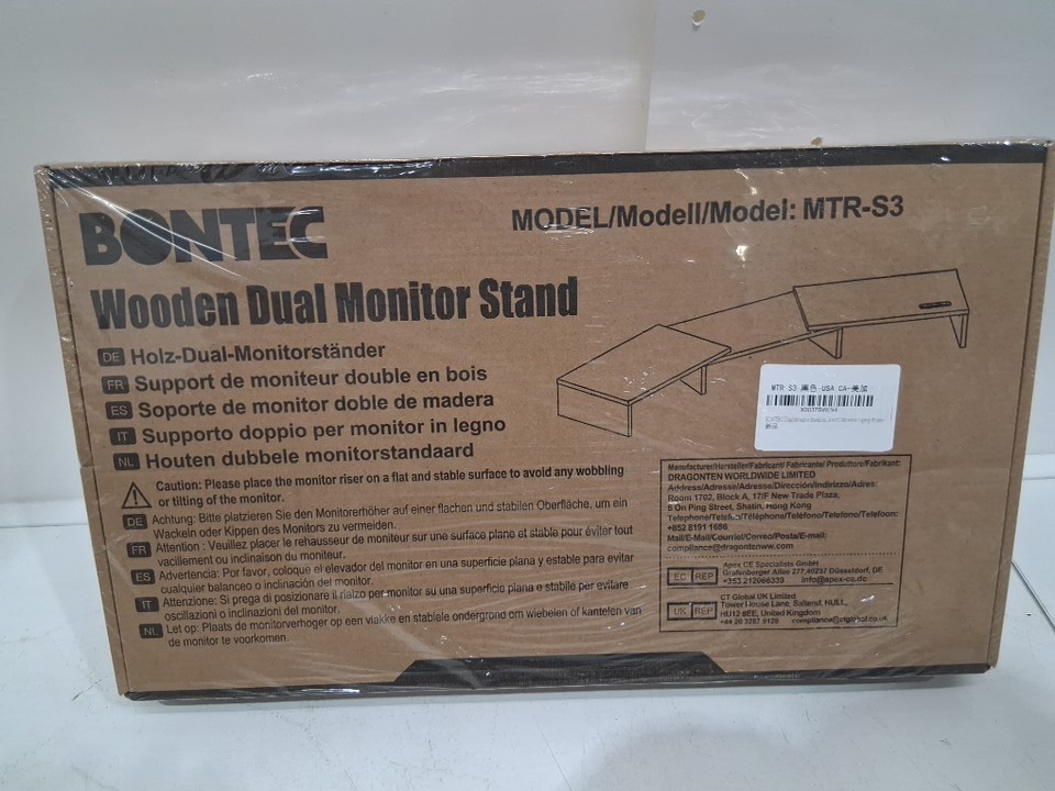 Bontec dual monitor stand riser with Smartphone Holder - 16.9" x 10" x 2.5" - black (model: mtr-s3)