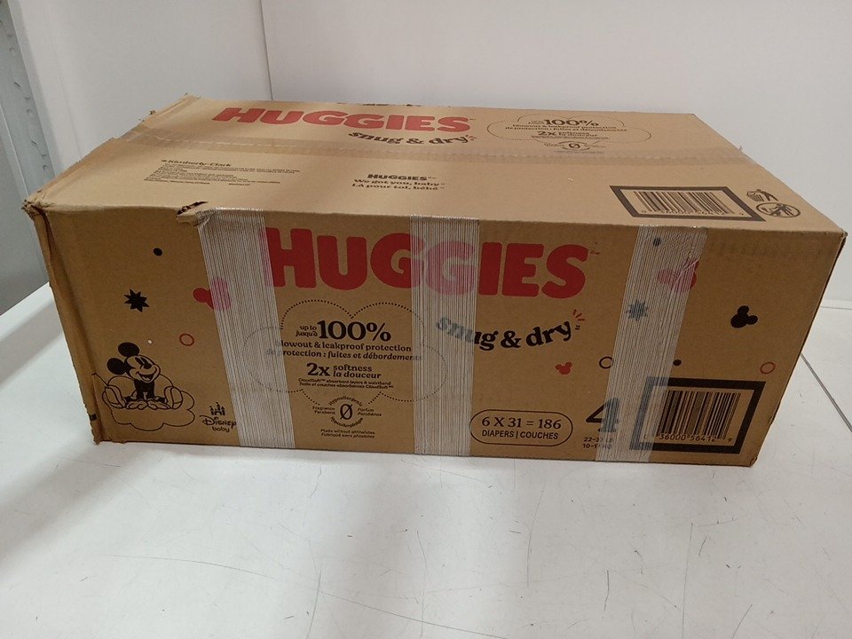 186pk huggies snug and dry diapers - size 4 - 22lb to 37lb - disney mickey mouse