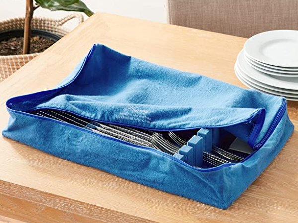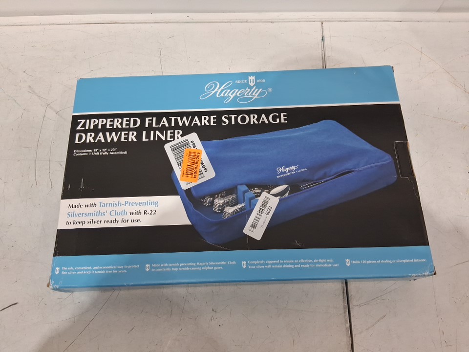 HAGERTY ZIPPERED FLATWARE STORAGE DRAWER LINER - TARNISH PREVENTING SILVERSMITHS CLOTH - 12"X19" - BLUE - (MODEL: 19111)