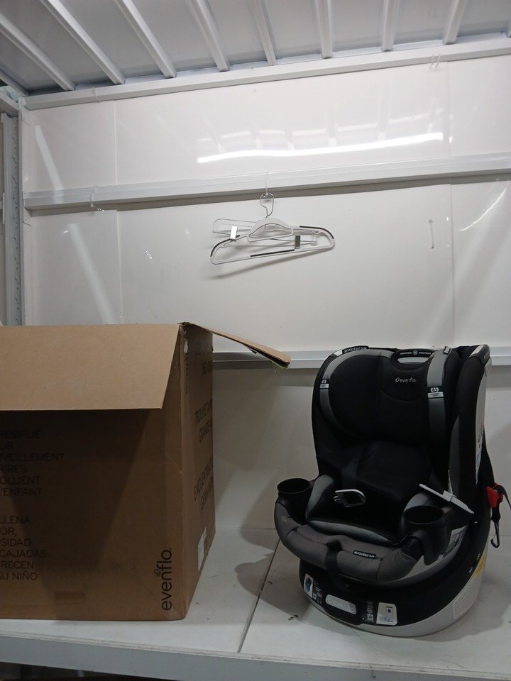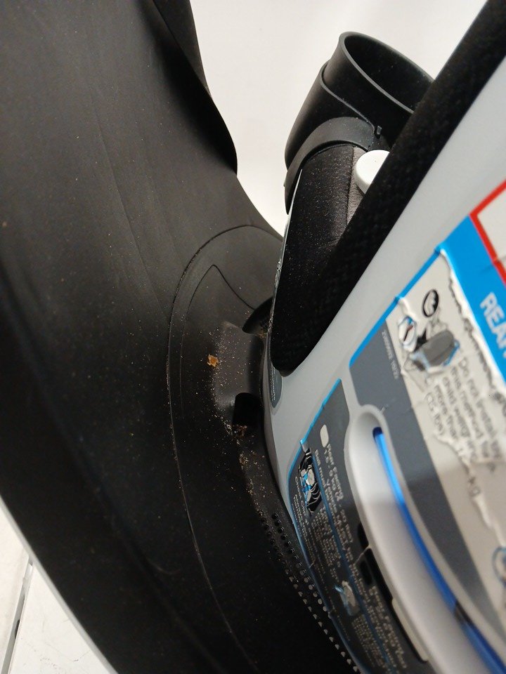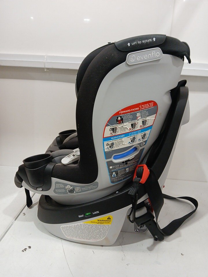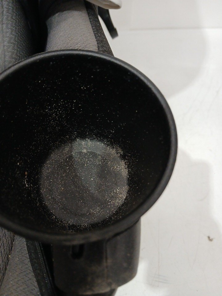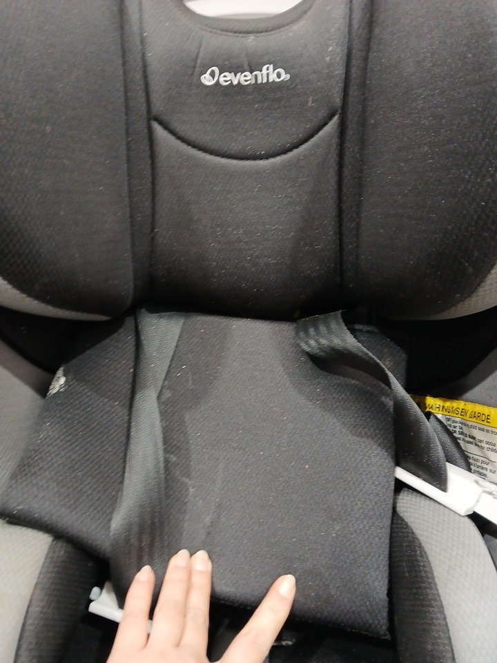 Has multiple spots/stains on the fabric of the seat and the cup holders are dirty from use. The fame of the seat has some spots and scuffs.