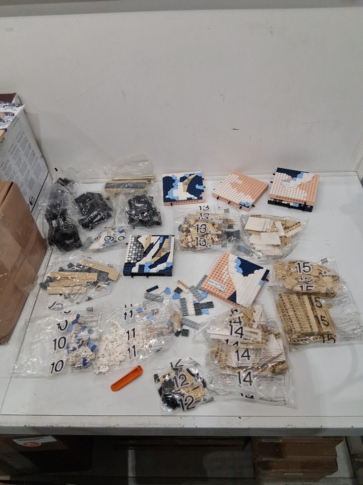 this product has been opened and partially assembled we cannot guarantee all the pieces are here, it still has the book, so you are able to contact Lego if anything is missing for a replacement