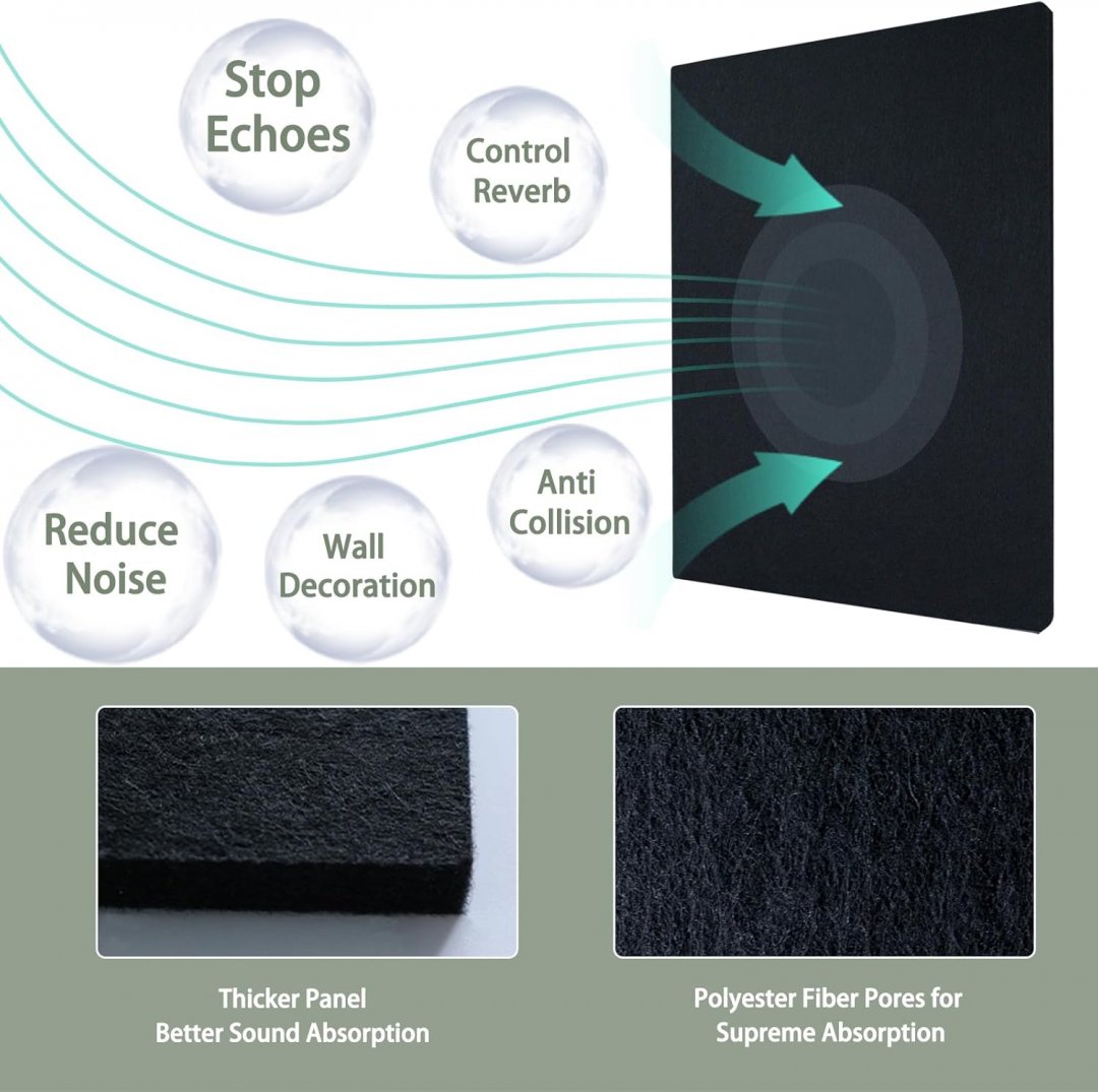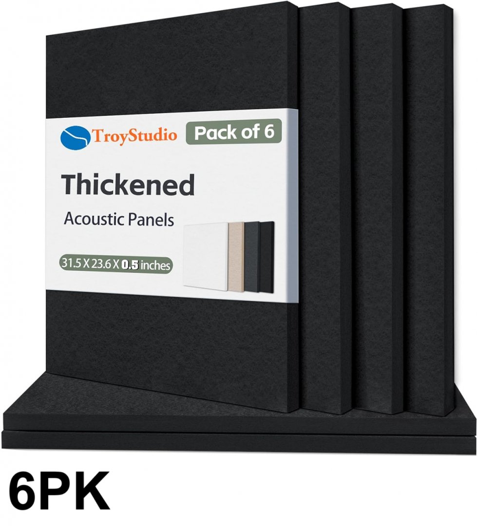 6pk troystudio sound proof acoustic panels - 31.5" x 23.6" x 0.5" - BLACK (model: ‎TS-AcstxPnl-L-black)